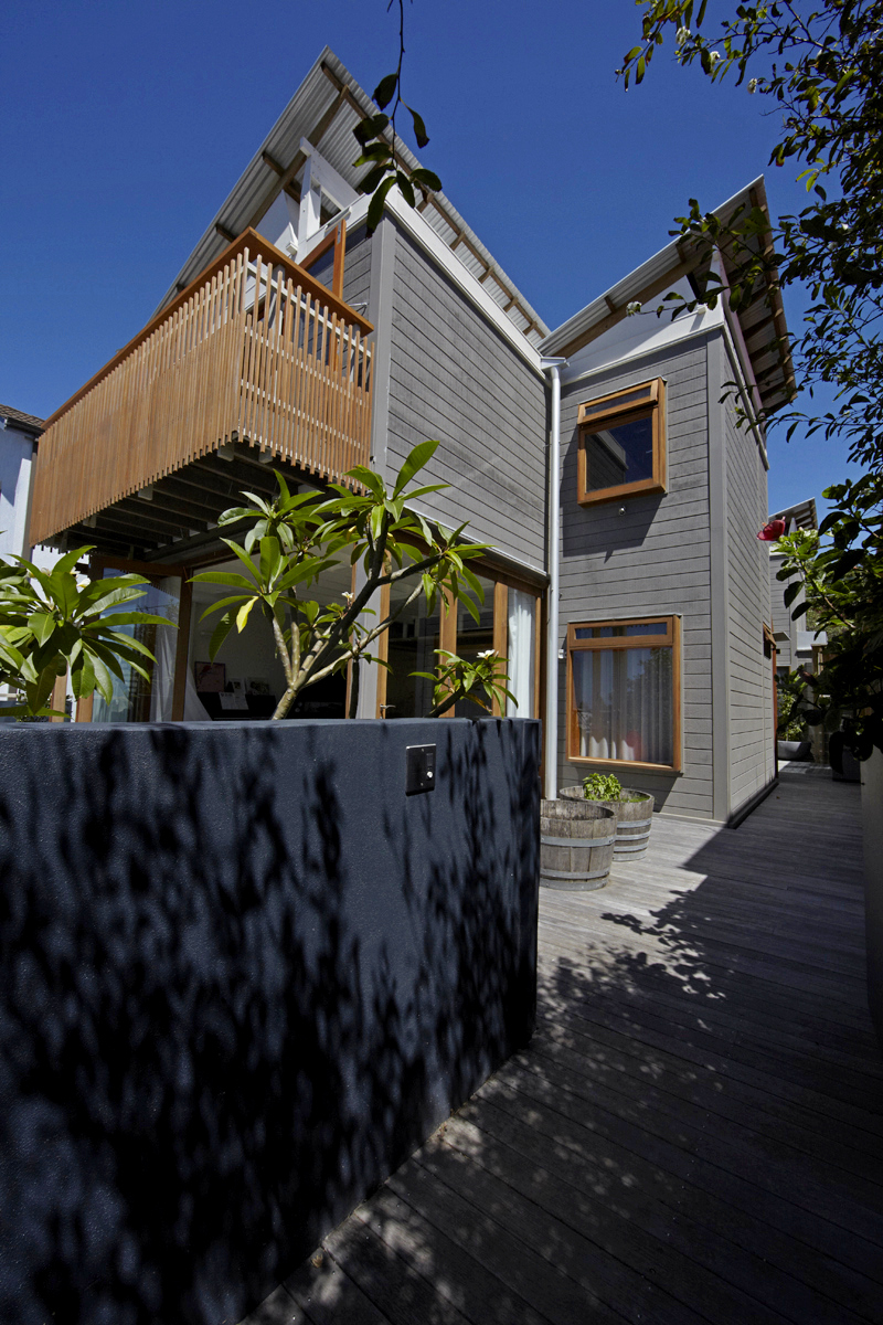 The house is on an east-west axis with its north façade oriented directly on to the neighbouring property. It has a northern-facing raked roof with highlight glazing. The atrium space brings in sunlight, yet maintains privacy from neighbouring properties.