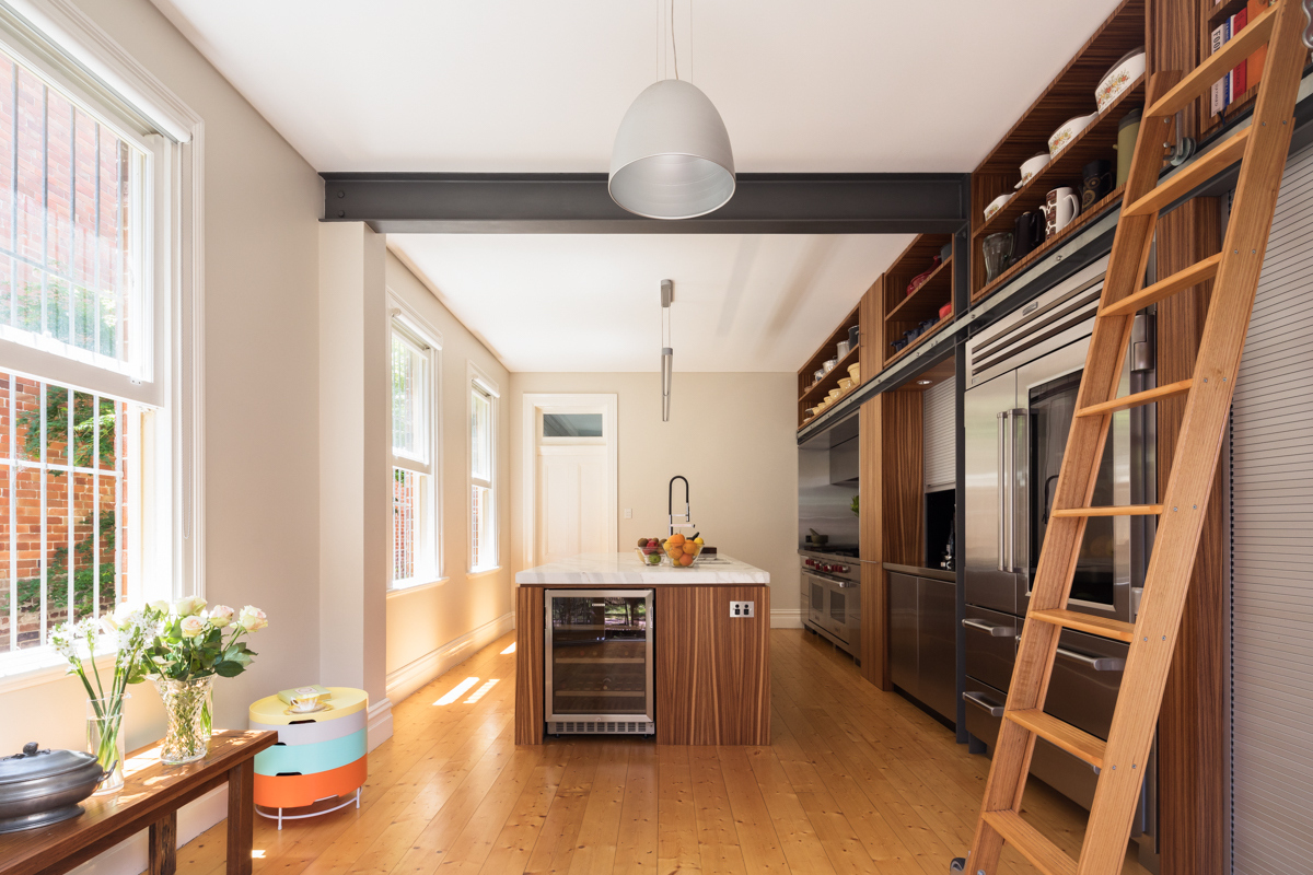 This is a renovation to the kitchen of an Art & Crafts terrace house located in Stanmore in Sydney’s inner west. The concept was to create a “man shed” for a medical specialist who likes to cook and entertain.